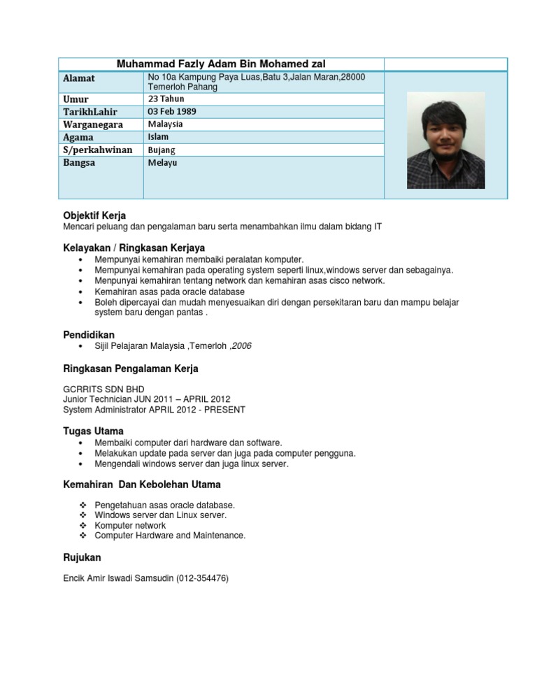 Cewek Sadis Contoh Resume Memohon Kerja Dalam Bahasa Melayu